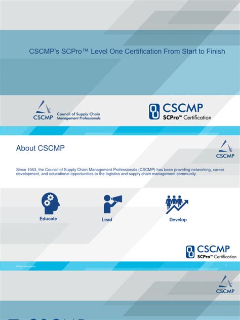 • Council of Supply Chain Management Professionals (CSCMP) SCPro Certification: CSCMP offers its own SCPro certification, focusing on various levels of supply chain expertise.