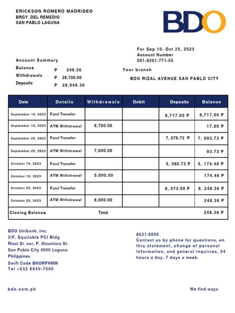 • Explore the Features: Take some time to explore all the features available on the BDO online banking platform. You can check your account balances, transfer funds, pay bills, view transaction history, and more.