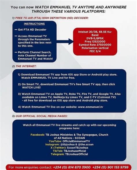 Partnership with Emmanuel TV means you’re actively participating in a divine mission. Your contributions, no matter the size, help to fuel the broadcasting of Emmanuel TV programs, which are known for their powerful messages, prophetic insights, and demonstrations of God’s power. These programs reach millions of viewers worldwide, offering spiritual guidance, healing, and deliverance. Beyond broadcasting, the partnership supports numerous outreach programs, including providing food, shelter, and medical assistance to those in need. Whether it’s supporting orphanages, providing disaster relief, or funding medical missions, your partnership helps to bring hope and practical help to vulnerable populations. By joining hands with Emmanuel TV, you become an integral part of a global family dedicated to making a positive impact on the world, one life at a time. It’s a chance to live out your faith in practical ways and witness the transformative power of collective action.