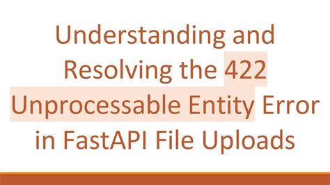Alright, guys, let’s dive into something super common yet often a head-scratcher when you’re building awesome APIs with FastAPI : the dreaded 422 Unprocessable Entity error. If you’ve ever worked with web APIs, you know how crucial it is for your server to understand what the client is sending. Sometimes, though, the data just isn’t quite right. That’s where the 422 comes in. FastAPI , a modern, fast (hence the name!), web framework for building APIs with Python 3.7+ based on standard Python type hints, leverages the power of Pydantic for data validation. This is fantastic because it means you get automatic data validation, serialization, and OpenAPI (Swagger UI) documentation for free! But, with great power comes great responsibility, and sometimes, this automatic validation is what throws a 422 Unprocessable Entity at your client. This error basically tells the client, “Hey, I get what you’re trying to do, and your request is syntactically correct, but there’s a problem with the content of the request, and I can’t process it.” It’s not a 400 Bad Request (which implies a malformed request, like broken JSON), nor is it a 500 Internal Server Error (which means something went wrong on the server’s end unexpectedly). The 422 is very specific: the server understands the request body, but the data within it just doesn’t meet the expected criteria. We’re going to explore what causes this error, how to effectively debug it, and, more importantly, how to prevent it from popping up in your production applications. Think of this as your ultimate guide to becoming a 422 error master, ensuring your FastAPI applications are robust and user-friendly. We’ll cover everything from understanding Pydantic’s role to implementing custom validation and setting up bulletproof error handling. So, buckle up, because we’re about to demystify this error and make your FastAPI journey a whole lot smoother. This deep dive will ensure you’re not just fixing these errors but understanding their root causes, leading to more resilient and maintainable API development practices.