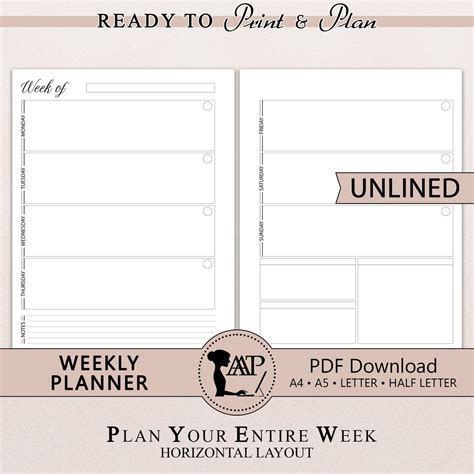 Ready to roll up your sleeves and design your own horizontal weekly planner layout ? This is where things get really fun and personal! Creating a custom layout means you get exactly what you need, without any of the compromises you might find in a pre-printed planner. The first step, know your needs . Seriously, guys, sit down and think about what you actually do during the week. Are you all about time blocking? Do you have massive to-do lists? Do you need space for meal prep notes, workout plans, or journaling prompts? Be brutally honest! Once you’ve got a clear picture, you can start sketching. A super simple approach is to just get a blank notebook or some plain paper and divide it into seven columns (one for each day) and then add horizontal lines. Think about the width you need for each day. If your weekdays are packed but your weekends are chill, you can make Monday-Friday columns wider and Saturday-Sunday narrower. Or, maybe you want a dedicated notes section at the bottom or side? Just draw it in! For time slots, simply rule the day column into equal segments and label them with times (e.g., 6 AM, 7 AM, 8 AM…). If you’re more of a list person, just leave plenty of lines or an open box for bullet points. Don’t be afraid to add extra sections! Maybe a ‘Top 3 Priorities’ box at the top of each day? Or a ‘Gratitude’ section? A ‘Water Intake Tracker’? The possibilities are endless. You can use a ruler for clean lines, or go freehand for a more organic feel. And hey, don’t forget about the visual aspect! Think about where you might add stickers, washi tape, or color-coding. A little bit of creativity can make your planner not just a tool, but a work of art that inspires you. Remember, the goal is to create a layout that serves you . It should make planning easier, clearer, and maybe even a little bit enjoyable. So, go ahead, grab some supplies, and start designing the perfect horizontal weekly spread for your unique life. You’ve got this!