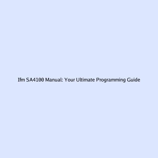 Ifm SA4100 Manual: Your Ultimate Programming Guide