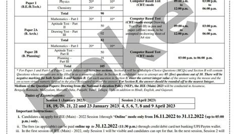 IIT-JEE 2023: Key Dates and Information
