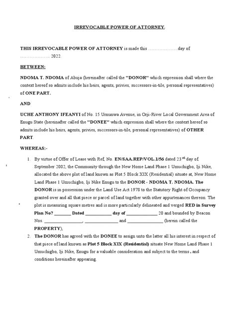 So, let’s really unpack what this legal beast, the irrevocable general power of attorney , signifies. When we talk about a power of attorney (POA), we’re generally referring to a legal document where one person (the principal) gives another person (the agent or attorney-in-fact) the authority to make decisions and act on their behalf. Now, add the word “general” to that. A general power of attorney grants the agent very broad powers. This could include managing bank accounts, selling property, paying bills, making investments, and handling legal matters. It’s a comprehensive delegation of authority. But the real game-changer here is the word “irrevocable.” Unlike a typical or “revocable” power of attorney, which the principal can cancel or change at any time as long as they are mentally competent, an irrevocable power of attorney is designed to be permanent or very difficult to revoke. This irrevocability usually stems from specific circumstances or agreements. For instance, it might be made in connection with a business transaction where the agent has a vested interest, or it could be part of an estate plan to ensure certain assets are managed in a particular way, often tied to a specific event or condition. The permanence is a critical feature; it means the principal gives up a significant amount of control. This isn’t something you’d enter into lightly, guys. It requires absolute trust in the agent and a clear understanding of the long-term commitment. The implications are vast, as the agent can wield substantial power over the principal’s assets and affairs, and the principal’s ability to undo this delegation is severely restricted. It’s the legal equivalent of locking the door and handing over the only key, with no easy way to get it back if you change your mind later on, unless specific conditions are met or legal avenues are pursued. The weight of this decision cannot be overstated, and seeking professional legal advice is absolutely paramount before considering or signing such a document.