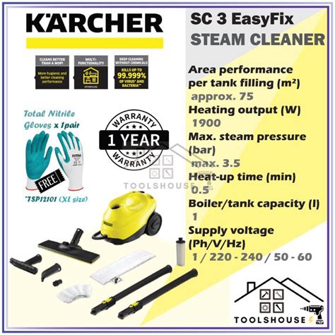 To ensure the longevity and optimal performance of your Karcher SC3, regular maintenance is crucial. After each use, always unplug the unit and allow it to cool down completely before storing it. Empty any remaining water from the tank to prevent mineral buildup and bacteria growth. Wipe down the exterior of the unit with a damp cloth to remove any dirt or grime. Pay special attention to the nozzle and accessories, as they can accumulate residue over time. Rinse them with water and allow them to air dry before storing them. Periodically check the power cord for any signs of damage, such as fraying or cracking. If you notice any damage, discontinue use and contact Karcher customer service for assistance. Descaling is an essential part of maintaining your Karcher SC3. Depending on the hardness of your water, you may need to descale the unit every few months to prevent limescale buildup. Use a descaling solution specifically designed for steam cleaners, following the manufacturer’s instructions. By following these maintenance tips, you can keep your Karcher SC3 in top condition and enjoy years of reliable cleaning performance.