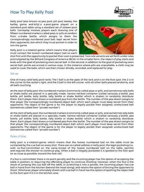 Alright, guys, let’s start with the basics. Kelly Pool , also known as Billiard Golf or Last Ball , is a variation of pool that adds a fun, strategic twist. Unlike standard games where everyone goes for the same balls, Kelly Pool assigns each player a specific numbered ball at the start of the game. Your goal? To sink your ball first. Sounds simple, right? But here’s where the strategy kicks in: you can sink your ball by legally pocketing any ball on the table, including your own, but you must call the pocket. If you sink your ball in the called pocket, you win! If you sink another player’s ball, they’re out. And if you sink your ball in an uncalled pocket, you’re out. It’s a game of precision, strategy, and a little bit of luck. The dynamic shifts as players get eliminated, making the table strategy even more intense. What makes Kelly Pool particularly engaging is the psychological element; you’re not just playing against the table, but also against your opponents’ strategies and potential mistakes. Each shot requires careful consideration – not just can I make this shot, but should I make this shot, considering the impact on other players and the potential for fouls. This strategic depth is what keeps players coming back for more, offering a different kind of challenge compared to games like 8-ball or 9-ball.