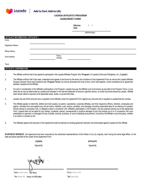 Lazada Affiliate Program Agreement: Your PDF Guide
