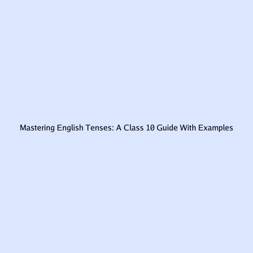 Mastering English Tenses: A Class 10 Guide With Examples