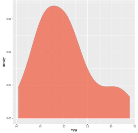 with the actual names of your data frame and variables. When you run this code, you’ll get a basic fill density plot. You’ll notice that each category of your categorical variable is represented by a filled density curve, allowing you to easily compare their distributions. The default colors are automatically assigned by