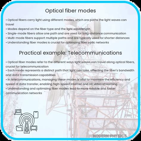 Now, let’s talk about some technical concepts related to modes. One important aspect is modal dispersion , which is the spreading of light pulses as they travel down a multimode fiber. Since different modes take slightly different paths, they arrive at the destination at different times. This time difference can cause the light pulses to overlap, which reduces the data transmission rate. The more modes, the more pronounced this effect will be. Single-mode fibers eliminate modal dispersion, which is why they are perfect for long distances. Other properties of modes include their polarization, which refers to the direction of the light wave’s oscillation, and their field patterns which describe how the light’s energy is distributed across the fiber’s core. Understanding these elements can optimize the transmission and performance of optical fiber systems. Whether you are dealing with single-mode or multimode, knowing about mode behaviors is key to optimizing performance and ensuring smooth data transfer.