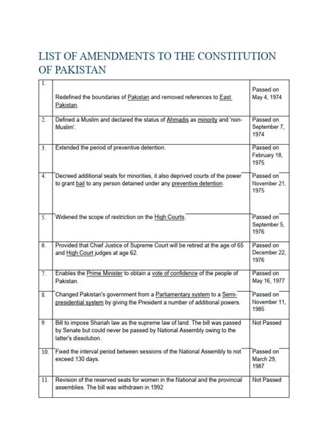 These are just a few examples, guys, but they show how amendments can drastically alter the constitutional framework and the distribution of power within the country. Each amendment tells a story about Pakistan’s political journey, its challenges, and its aspirations for governance.