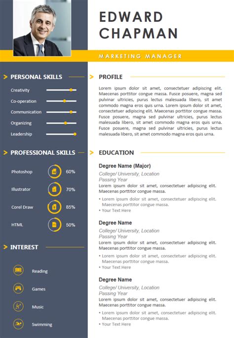 Creating a compelling PowerPoint CV design can be easier with the right tools and resources. PowerPoint itself offers a wide range of features for designing visually appealing resumes, including customizable templates, SmartArt graphics, and formatting options. In addition to PowerPoint, there are many online resources that can help you create a standout resume. Websites like Canva and Visme offer pre-designed resume templates and design tools that can be used to create professional-looking CVs. These platforms often have drag-and-drop interfaces, making it easy to customize your resume even if you don’t have extensive design experience. Another valuable resource is online tutorials and guides. Websites like YouTube and LinkedIn Learning offer tutorials on how to design effective PowerPoint CVs, covering topics such as layout, color schemes, font choices, and use of visuals. These tutorials can provide step-by-step instructions and helpful tips for creating a resume that stands out from the crowd. Also, consider using online resume builders. These tools typically offer a range of templates and features that can help you create a professional-looking resume quickly and easily. However, be sure to choose a reputable resume builder and carefully review your resume before submitting it. By leveraging these tools and resources, you can create a PowerPoint CV design that is both visually appealing and effective in communicating your skills and experience to potential employers.