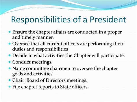 President’s Responsibilities: A Comprehensive Guide