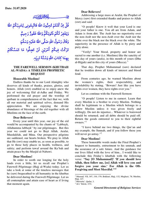 The farewell sermon of Prophet Muhammad wasn’t just a speech; it was a profound act of love and a strategic act of legacy-building. As he concluded his address, the Prophet famously asked the gathered multitude, “ Have I conveyed the message? ” And when they unanimously responded, “ Yes, by Allah! ” he raised his forefinger to the sky and said, “ O Allah, bear witness. ” This interaction underscores the solemnity and the divine endorsement of his message. It was a confirmation that the mission entrusted to him was fulfilled, and the teachings were now entrusted to humanity. Following this, he gave further instructions, emphasizing the transfer of knowledge: “ Let those who are present convey this to those who are absent. ” This directive highlights the communal responsibility of spreading the message and ensuring its preservation. The last sermon of Prophet Muhammad is a testament to his deep concern for the future of his community and his meticulous planning to ensure the continuity of Islam. He understood that his physical presence would be limited, but the message of Islam was eternal. By delivering such a comprehensive and powerful sermon, he equipped his followers with the essential principles needed to navigate life according to divine guidance. The farewell message of Prophet Muhammad serves as a constant reminder that Islam is not a religion confined to rituals; it’s a complete way of life that encompasses every aspect of human existence, from personal piety to social justice, economic fairness, and ethical conduct. His final words were a call to live lives that are pleasing to Allah, to uphold justice, to show mercy, and to remain united. It’s this enduring legacy of guidance that continues to inspire and shape the lives of Muslims worldwide. The Prophet’s departure, though a source of immense grief for his companions, was softened by the certainty that he had left behind a clear path, a well-defined road map for humanity to follow, illuminated by the Quran and his Sunnah. This sermon isn’t just a historical document; it’s a living, breathing testament to the Prophet’s unparalleled leadership and his everlasting compassion for all of mankind.