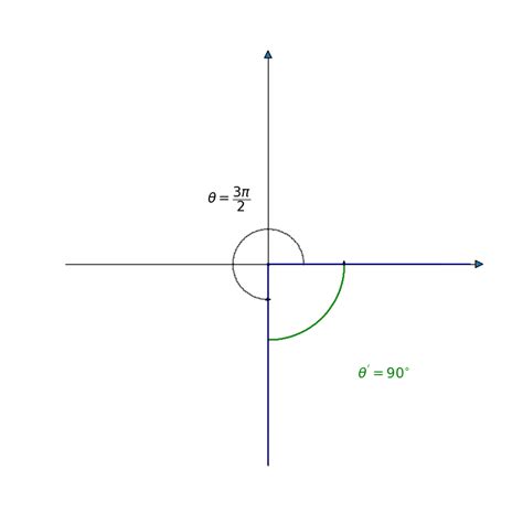 - The angle between the negative y-axis and the positive x-axis is \(\frac{\pi}{2}\) radians (or 90 degrees).