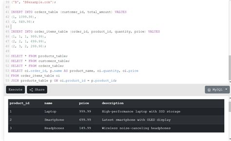 Now that you’ve set up your table with an auto-incrementing ID, let’s get some data in there! Inserting data into your table is super simple. Since the id column auto-increments, you don’t need to provide a value for it when inserting new rows. The database will automatically handle that for you. Here’s how you can do it using SQL. Assuming you have a table named products with columns id , name , and description , you can insert a new product using the following SQL command: