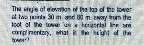 Now, let’s amp it up a notch. We’re not just looking from one point, but from two points to see the angle of elevation of the top of a tower . Picture this: you’ve got a tower standing tall. You start at Point A on the ground, and you measure the angle of elevation to the top of the tower. Let’s call this angle ‘alpha’ ( \(\alpha\) ). Then, you walk a certain distance, either towards or away from the tower, to a new spot, Point B. From Point B, you measure the angle of elevation again. Let’s call this angle ‘beta’ ( \(\beta\) ). The magic happens because we now have two different perspectives, two different triangles, and two different angles related to the same tower height. Typically, these two points (A and B) and the base of the tower will lie on the same straight line. This is a common simplification in these types of problems, making the geometry a bit cleaner. If Point B is further away from the tower than Point A, then beta ( \(\beta\) ) will be smaller than alpha ( \(\alpha\) ). If Point B is closer, then beta ( \(\beta\) ) will be larger. The distance between Point A and Point B is also a critical piece of information. Knowing this distance, along with the two angles, gives us enough data to solve for unknowns. We’re essentially creating two right-angled triangles that share a common vertical side (the tower’s height) but have different horizontal bases.