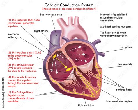 The main job of this system is to make sure your heart beats in a coordinated way. This coordination is super important because it allows the heart to pump blood efficiently. The system is made up of a bunch of specialized cells that create electrical signals. These signals travel through the heart, telling the different parts when to contract. This is what makes your heart beat nice and strong. The health of this system is crucial for your overall well-being. Issues here can cause all sorts of problems, from feeling a little off to serious heart conditions. It’s like the electrical wiring in your house – when it’s working, everything runs smoothly, but when there’s a fault, things can go haywire.
