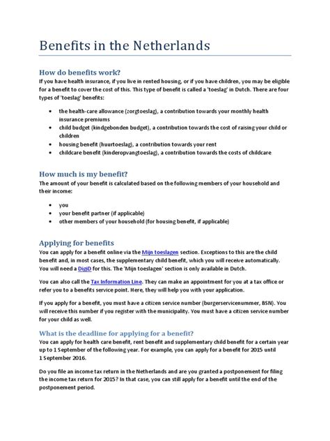 For families and individuals trying to make ends meet, welfare in the Netherlands offers specific allowances that can make a significant difference. Let’s talk about child benefits ( kinderbijslag ) and housing allowances ( huurtoeslag ). Child benefits are provided by the Sociale Verzekeringsbank (SVB) and are intended to help parents with the costs of raising children. If you have children under 18 living with you, you are generally eligible. The amount you receive depends on the age of your children – you typically get a bit more for older children. You usually need to apply for this, and it’s often based on your registration in the Personal Records Database ( BRP ). It’s a direct contribution to help cover expenses like food, clothing, and school supplies. Then there’s the housing allowance, huurtoeslag . This is a contribution from the government towards your rent costs if you live in a rented property and your income and rent are below a certain threshold. It’s administered by the Tax Administration ( Belastingdienst Toeslagen ). To qualify, you must be 18 or older, have a rental contract, live in the Netherlands, have an income below a certain limit, and your rent must not be too high. The amount of huurtoeslag you receive depends on your income, rent price, and household composition. It’s crucial to apply for these allowances as they are not automatically granted. You can usually apply online via the relevant government websites (SVB for child benefits, Belastingdienst for housing allowance). Accessing child benefits and housing allowances requires understanding the eligibility criteria and submitting an application. These allowances are a key part of the Dutch welfare system, designed to ease financial burdens for families and lower-income individuals, ensuring greater affordability in basic living costs.