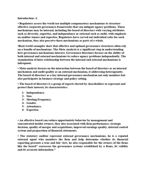 Okay, let’s talk about the committees of the board . The board of directors is often too large and has too many responsibilities to handle everything effectively. That’s where committees come in. These committees are specialized groups of board members who focus on specific areas of oversight. They allow the board to delve deeper into important issues and provide more focused attention to key areas of risk and opportunity. The most common committees include the audit committee, the compensation committee, and the nominating and governance committee. The audit committee is responsible for overseeing the company’s financial reporting process, including the external audit. This committee ensures that financial statements are accurate, reliable, and comply with accounting standards. They work closely with the external auditors to assess the company’s financial controls and identify any potential risks. The compensation committee is responsible for setting the compensation of the company’s executives. This committee ensures that executive compensation is aligned with the company’s performance and that it is fair and reasonable. They also evaluate the performance of the executives and make recommendations to the board on their compensation. The nominating and governance committee is responsible for identifying and recommending candidates for the board of directors. This committee also oversees the company’s corporate governance practices, including the board’s structure and composition. The specific responsibilities of each committee may vary depending on the company and its industry, but the overall goal is the same: to provide specialized oversight and expertise in key areas of the business. By delegating responsibilities to committees, the board can improve its efficiency and effectiveness, ensuring that it is able to fulfill its oversight responsibilities effectively. The committees play a crucial role in ensuring that the board has the information and expertise it needs to make informed decisions and effectively oversee management. They act as specialized eyes and ears for the board, helping to identify and address potential risks and opportunities. So, understanding the role of these committees is essential to understanding the overall structure and effectiveness of corporate governance.